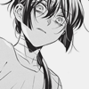 Description: manga side smirk grin